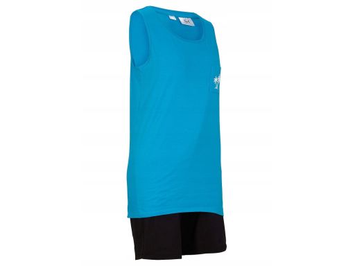 - Niebieski top z kieszenią na piersi z nadrukiem w palemki